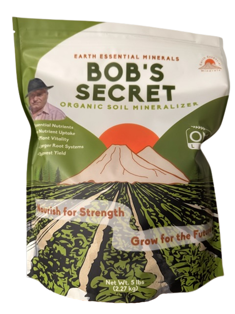 Bobs Secret is an all-natural mineral that enhances soil health and crop productivity. Our mineralizer enriches the earth, promotes healthy plant growth, and supports sustainable farming practices. Whether you’re a backyard gardener or a commercial farmer, Bob’s Secret will help you achieve vibrant and thriving gardens.