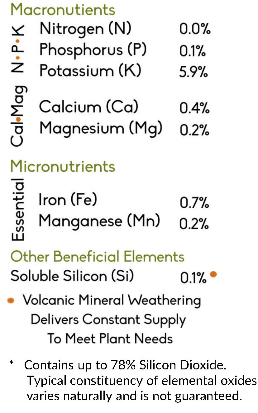As Bob’s Secret weathers naturally in soil, it becomes part of the earth’s carbon cycle. In contact with water, soil nutrients, and soil microbes, Bob’s Secret binds atmospheric CO2 forming new, stable compounds while liberating free silicon for strong, healthy plants.